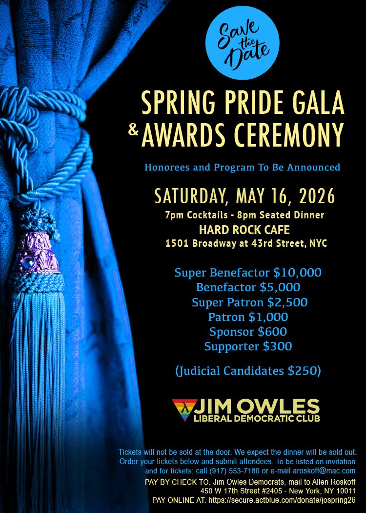 PAY BY CHECK TO: Jim Owles Democrats, mail to Allen Roskoff 450 W 17th Street #2405 - New York, NY 10011